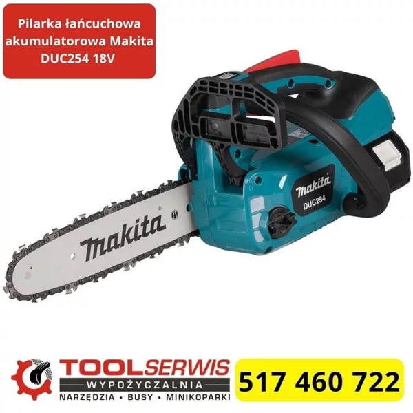 Pilarka łańcuchowa akumulatorowa Makita DUC254 18V jest lekka i dynamiczna. Zapewnia szybkie cięcie gałęzi i drewna konstrukcyjnego. Silnik bezszczotkowy utrzymuje stałą prędkość łańcucha. Automatyczne smarowanie i hamulec łańcucha zwiększają bezpieczeństwo.
