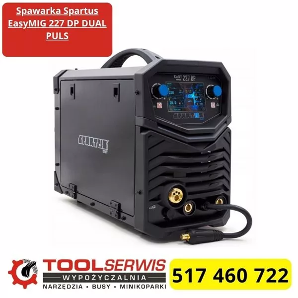 SPARTUS EasyMIG 227 DP to półautomat MIG/MAG z funkcją podwójnego pulsu, idealny do stali i aluminium. Oferuje prąd spawania do 220 A, pracuje na 230 V i umożliwia spawanie MIG/MAG, MMA oraz TIG Lift. Czterorolkowy podajnik zapewnia stabilne podawanie drutu, a synergia ułatwia ustawienia. Sprawdza się w warsztatach, serwisach i pracach przy karoserii.