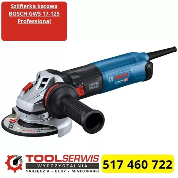 Szlifierka kątowa Bosch GWS 17-125 Professional to profesjonalne narzędzie do szlifowania i cięcia. Urządzenie ma moc 1 700 W oraz tarczę 125 mm. Prędkość pracy wynosi od 2 800 do 11 500 obr./min. Zastosowano systemy zwiększające bezpieczeństwo pracy. Konstrukcja waży około 2,2 kg, co poprawia komfort użytkowania.