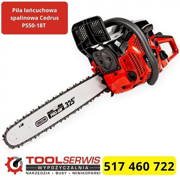 Piła łańcuchowa spalinowa Cedrus PS50-18T jest mocna i poręczna. Zapewnia szybkie cięcie drewna opałowego i konstrukcyjnego. Silnik 3 KM ułatwia wejście w twardy materiał. Prowadnica 45 cm zwiększa zasięg cięcia.